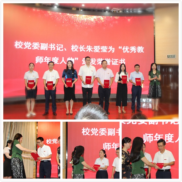 受表彰的“优秀教师年度人物”上台接受荣誉证书