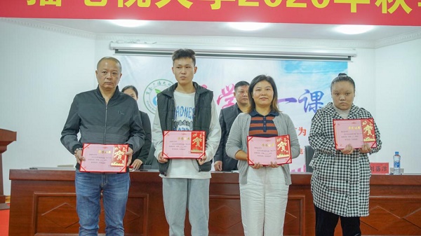 最后,罗咏对在场学员寄予殷切期望。希望学子们心存敬畏,敬师立志,增强学习本领;希望学子们心系电大,与电大一起并肩奋斗,成为电大转型发展的见证者与受益者;希望学子们见贤思齐,不负时代所托,逐梦未来。