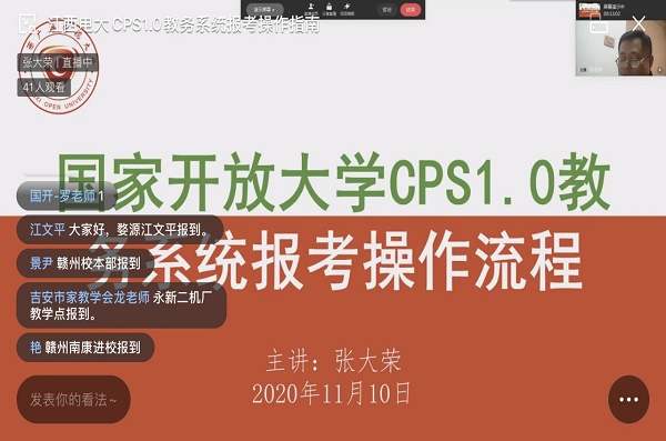 为进一步做好2020年秋季学期教务系统报考工作,11月10日,买球官网教务处以在线直播形式组织召开全省CPSI.1教务系统报考培训。全省各电大(分校),省电大直属开放教育学院、应用技术学院及所辖考点负责报考工作的考务人员,共170余人参加会议。会上,上饶电大张大荣作为主讲人分别就教务系统功能及使用,操作流程及注意环节等做了详细报告。本次会议与会人员,参会积极、反响热烈,一致认为此次教务系统培训会对开展报考工作具有帮助,会议取得圆满成功。(文字/图片:教务处 责任编辑:徐星星)