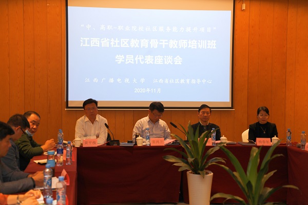 11月13日下午,省委教育工委委员、教育厅副厅长裴鸿卫一行莅临买球官网承办的江西省社区教育骨干教师培训班,与学员代表进行亲切座谈。校党委书记易小明,校党委副书记、校长黄平槐出席座谈会。来自各地市、区县的16名学员代表,学校社会教育学院全体人员参加座谈会。会议由黄平槐主持。
