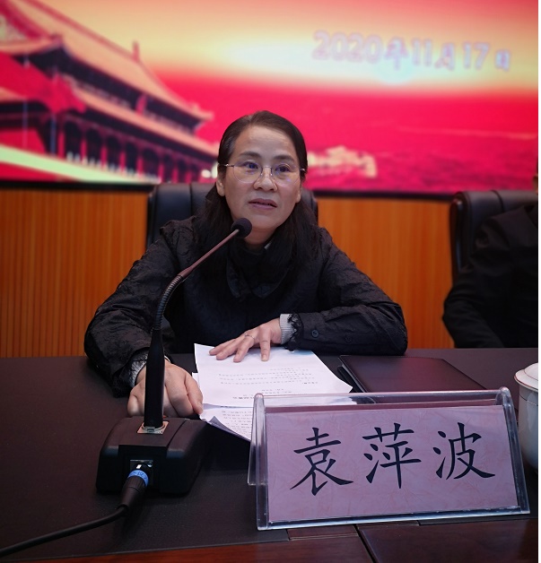 袁萍波就如何规范化招生,促进学校高质量发展工作作讲话。她指出了学校招生工作中存在的问题,提出了防范风险措施:一是加强思想防控,二是健全体制防控,三是完善机制防控。