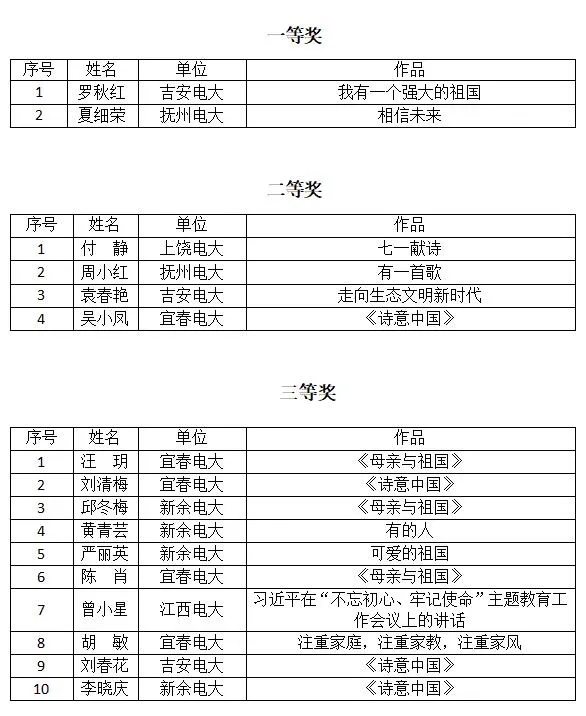 现将各类活动比赛获奖名单表彰如下:
