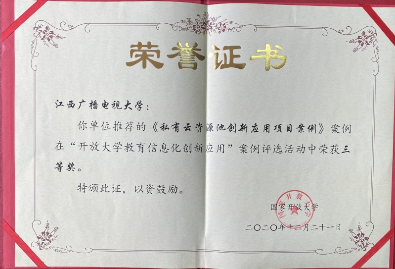 近日,国家开放大学公布开放大学教育信息化创新应用案例评选结果,买球官网报送的《私有云资源池创新应用项目案例》荣获三等奖。据悉,本次活动共收到110个信息化创新应用案例,经过专家评审,最终确定一等奖5个、二等奖10个、三等奖17个、优秀案例奖10个、组织奖单位6个。活动旨在探索先进信息技术在开放教育中的创新应用,推进线上线下融合的开放教育不断蓬勃发展。(文字:徐星星 图片:现代教育技术中心 责任编辑:张睿)