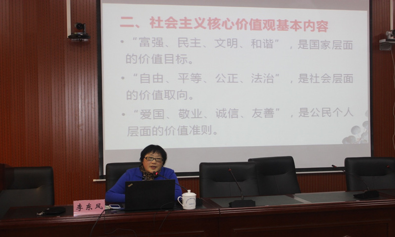 李东风教授阐明了习近平总书记对高校立德树人的论述与要求,指出高校立德树人的根本任务就是造就担当民族复兴大任的时代新人。其次,她讲述了社会主义核心价值观的基本内容,重点阐述了友善观的主要内涵以及友善观缺失的具体表现和案例。她还通过介绍友善观的科学方法,即五层次、三要素、四步骤,呼吁新时代大学生应努力实现自我成长,积极表达,善于表达;学会沟通,学会友善,学会幸福。