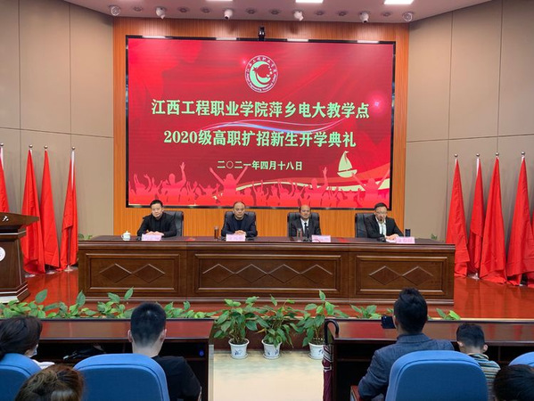 4月18日,江西工程职业学院萍乡电大教学点高职扩招2020级新生开学典礼如约而至。萍乡电大校长宋福坚、党委书记荣炳根、副校长彭志刚出席典礼,全体教师和300余名2020级高职扩招新生参加了典礼。开学典礼由副校长左仁祥主持。