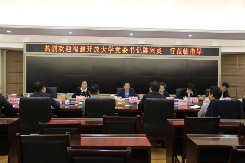 4月28日上午,福建开放大学党委书记一行6人来买球官网访问交流。校党委副书记、校长黄平槐,党委副书记邓文君热情接待了来宾,并进行了深入座谈。