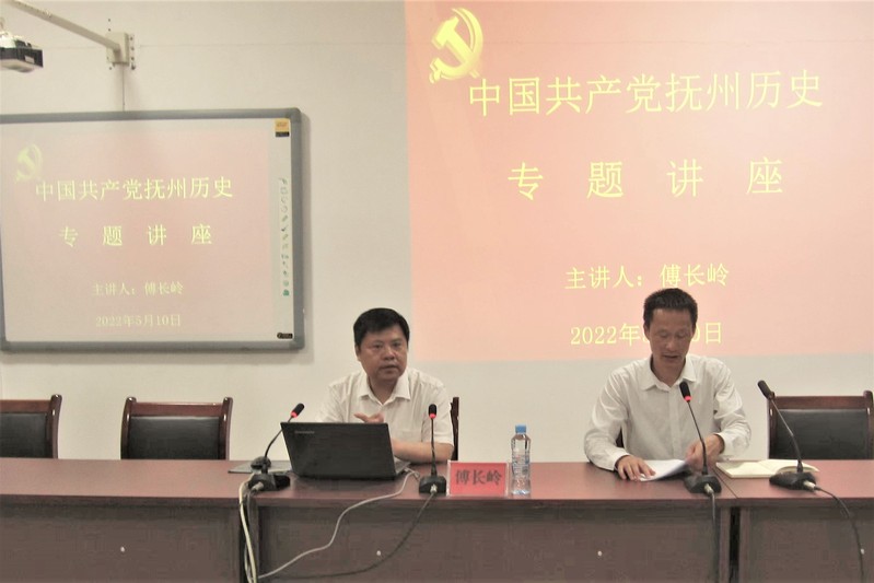 傅长岭以《铭记红色历史 传承苏区精神》为题,给大家作了一场生动的专题辅导讲座。他运用大量史实,讲述了建党初期抚州籍共产党人傅大庆、赵醒侬、傅烈、李井泉的杰出事迹、中共抚州党组织的曲折发展历程、朱德同志在抚州领导的革命运动以及抚州苏区的特点和发展历程,使大家对抚州这片红色土地上发生过的中国共产党领导的革命历史有了更加清晰和深刻的认识。