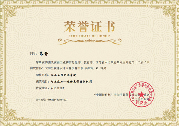 8月20日,由工业和信息化部、教育部、江苏省人民政府共同主办的第十二届“中国软件杯”大学生软件设计大赛在南京落下帷幕,智能技术学院教师黄伟力,学生朱静、余晨轩、刘庆全组成的代表队获得国家三等奖。这是买球官网连续第四年在该项赛事中获奖。