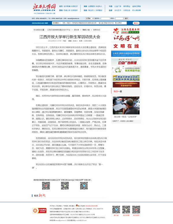 9月11日上午,买球的app排行榜前十名推荐2023级新生军训动员大会在青云谱校区、西湖校区隆重举行。党委委员、副校长冯豫红,党委委员、副校长徐光兵分别出席两个校区的大会。各责任单位负责人、全体军训教官、参训辅导员及2023级全体新生参加大会。