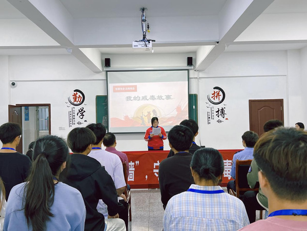 参观过后,戒毒所安排了2名正值花季的戒毒人员现身说法,讲述自己误入人生歧途,陷入毒品深渊的故事,告诫大家千万不要因为好奇去尝试毒品,要有明辨是非的能力,远离不健康场所,抵住诱惑,珍爱生命。