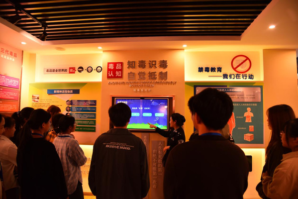 戒毒所民警向师生们介绍了戒毒所的基本情况,并带领大家参观了戒毒医疗中心、教育矫正中心、心理矫治中心、康复训练中心、禁毒展览馆等场所,详细讲解毒品的种类、危害等。