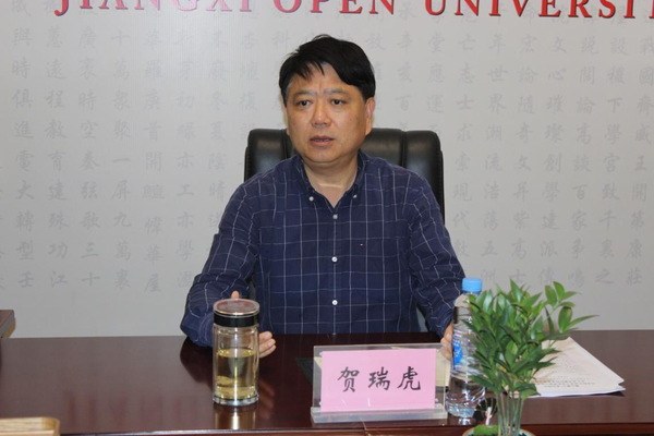 贺瑞虎要求,一要迅速兴起学习宣传贯彻热潮。把学习好、宣传好、贯彻好习近平总书记的重要讲话,作为当前和今后一个时期的首要政治任务和头等大事来抓,精心组织、周密部署、科学安排,不断强化宣传宣讲、学习研讨、理论阐释,推进习近平总书记考察江西重要讲话精神进设区市开放大学,进班级、寝室、学院,切实把全校师生的思想和行动统一到习近平总书记对江西的殷切嘱托和工作要求上来,进一步坚定理想信念、坚定发展信心、研究发展对策、推进转型升级,以实际行动回报习近平总书记和党中央的关心厚爱。二要对标对表重要讲话精神的工作要求。结合省委打造“三大高地”、实施“五大战略”部署,以服务地方经济社会高质量发展为导向优化学科专业布局,进一步加大高技能人才培养力度,推动各专业学院主动对接行业、产业、企业,以深化校企合作推进产教深度融合。找准差异化、错位化、特色化发展新赛道,在终身教育领域展现开放大学的作为。积极贯彻落实人口老龄化国家战略,构建切实有效的决策和执行机制,用心用力助推国家老年大学体系在江西落地,围绕“德学康乐为”的办学宗旨,促进老年人厚德修身、终身学习、主动健康、乐享生活、积极作为,不断满足老年人多样化的学习需求,努力打造全省老年朋友的知识学园、生活乐园和精神家园。打造对内对外开放工作格局,主动服务和融入新发展格局,不断完善“融合融通”的体制机制改革,推进“三定”方案落实落地。持续做好“一村一名大学生”计划,落实好乡村教师学历提升计划的各项工作,不断夯实巩固脱贫攻坚成果与乡村振兴工作基础,持续为江西经济社会发展培养大量“留得住、用得上、干得好”的应用型人才。三要持之以恒坚持和加强党的全面领导。重点抓好党委班子建设,以政治建设统领党的各项建设,不断提高新时代党的建设质量。坚持党内监督和人民群众监督相结合,时刻铭记“党风廉政建设永远在路上,反腐败斗争永远在路上”,弘扬伟大建党精神和自我革命精神,纵深推进全面从严治党,持续深化作风建设,一体推进不敢腐、不能腐、不想腐。大力弘扬井冈山精神、苏区精神、长征精神,传承红色基因,赓续红色血脉,筑牢政治忠诚,发挥表率作用,务必敢于斗争、善于斗争,持续营造学校风清气正、干事创业的良好政治生态。