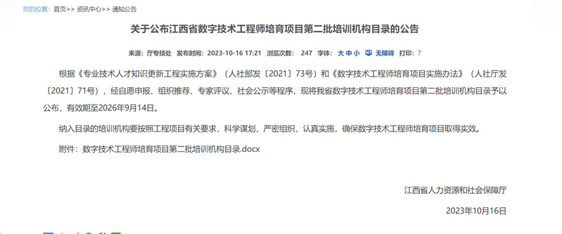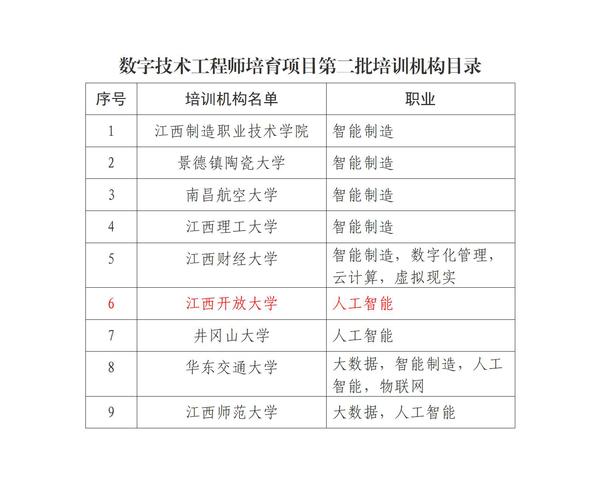 近日,江西省人力资源和社会保障厅公布了江西省数字技术工程师培育项目第二批培训机构目录,买球官网社会教育学院联合智能技术学院申报的人工智能工程技术人员培育项目培训机构成功获评。