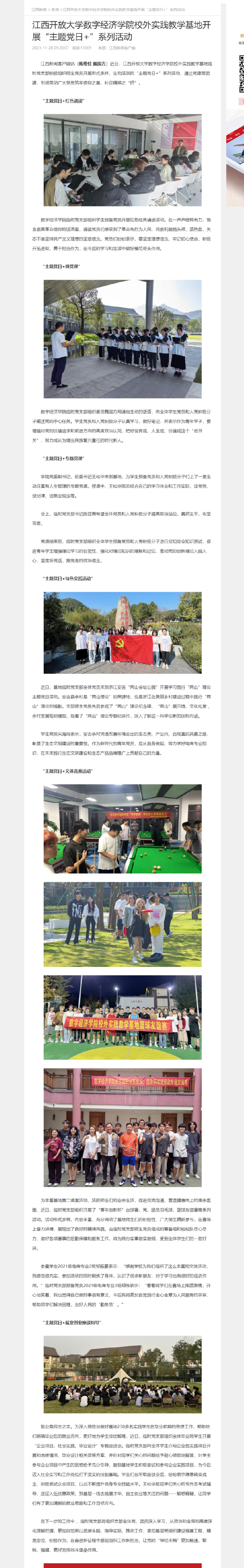 江西新闻客户端讯(陈维佳 魏国方)近日,买球的app排行榜前十名推荐数字经济学院校外实践教学基地临时党支部积极组织师生党员开展形式多样、生动活泼的“主题党日+”系列活动,通过党建带团建,引领带动广大党员筑牢信仰之基、补足精神之“钙”。
