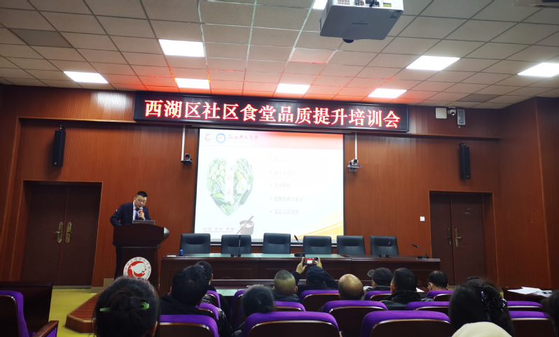 为进一步提升西湖区社区食堂品质,更好地满足社区居民用餐需求,充分发挥高职院校社会服务职能,12月15日下午,城乡发展学院承办了西湖区民政局“社区食堂品质提升暨食品安全培训”活动。西湖区社区食堂厨政人员参加培训。