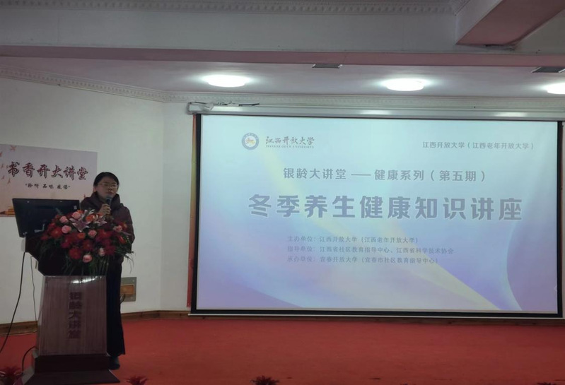 为贯彻落实习近平总书记对加强新时代老龄工作的重要指示和国家卫生健康委等15部门联合印发的《“十四五”健康老龄化规划》精神,提高中老年人的主动健康能力,促进实现健康老龄化,2024年1月3日下午,由买球的app排行榜前十名推荐(江西老年开放大学)主办,宜春开放大学承办的“银龄大讲堂”第五期健康系列——冬季养生健康知识讲座在宜春开放大学校本部成功举办。讲座通过线上线下的形式同步开展,全省各地市开放大学(社区教育指导中心)组织分会场集中收看,200余人现场参加了活动,线上直播观看量达1.5万人次。