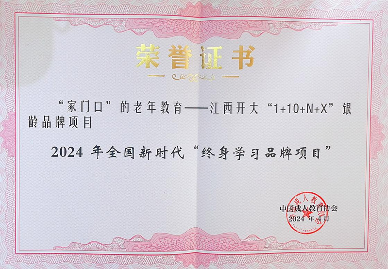 近日,在2024年全民终身学习活动周全国总开幕式上,买球官网推荐的“家门口”的老年教育——江西开大“1+10+N+X”银龄品牌项目荣获2024年全国新时代“终身学习品牌项目”,这是买球官网首次入选国家级“终身学习品牌项目”。