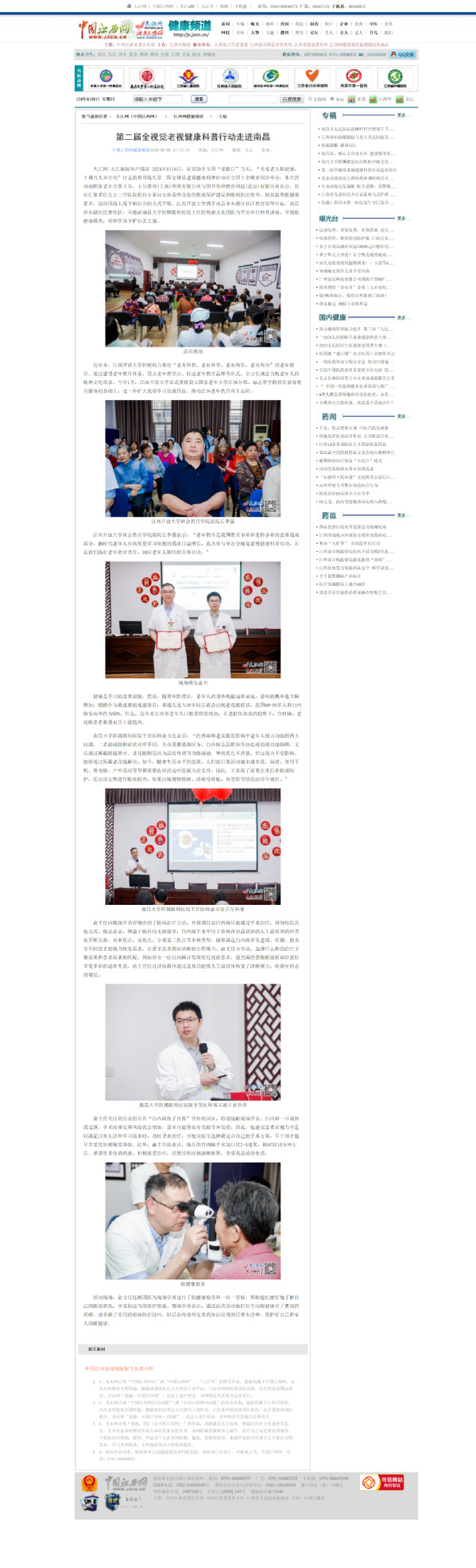 2024年6月6日,在第29个全国“爱眼日”当天,“关爱老人眼健康,十城万人齐行动”行走的蔡司镜头第二届全视觉老视健康科普行动在全国十余城市同步举办。本次活动由国家老年大学主办,卡尔蔡司(上海)管理有限公司与国开贝和教育科技(北京)有限公司协办,旨在汇聚多位公立三甲医院眼科专家向全体系学员提供眼部保护建议和眼病防治指导,助其提升眼健康素养。活动以线上线下相结合的方式开展,买球的app排行榜前十名推荐携手南昌市东湖区社区教育指导中心、南昌市东湖区民巷社区,并邀请南昌大学附属眼科医院主任医师俞方良团队为学员举行科普讲座、开展眼健康筛查,帮助学员守护心灵之窗。