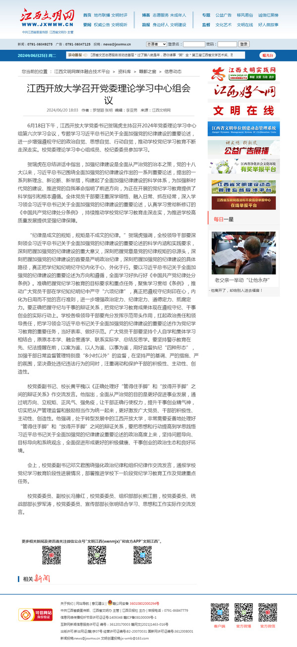 6月18日下午,买球的app排行榜前十名推荐党委书记贺瑞虎主持召开2024年党委理论学习中心组第六次学习会议,专题学习习近平总书记关于全面加强党的纪律建设的重要论述,进一步增强遵规守纪的政治自觉、思想自觉、行动自觉,推动学校党纪学习教育不断走深走实。校党委理论学习中心组成员、校纪委委员参加学习。