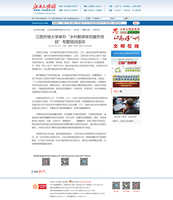 为落实江西省“乡村教师学历提升专项培训项目”工作,推进学历教育与教师培训深度融合,提升乡村教师学员职业发展能力,近日,买球的app排行榜前十名推荐在上饶市广信区举办2024年“乡村教师学历提升项目”专题培训活动,活动由上饶开放大学、广信区开放学院协办。培训聚焦“新视域、新技术,新教学”助力乡村振兴人才技能再提升,采用“线上+线下”的并行方式,面向全省开放大学体系同步开展。买球的app排行榜前十名推荐党委副书记、校长黄平槐出席活动开幕式并讲话。