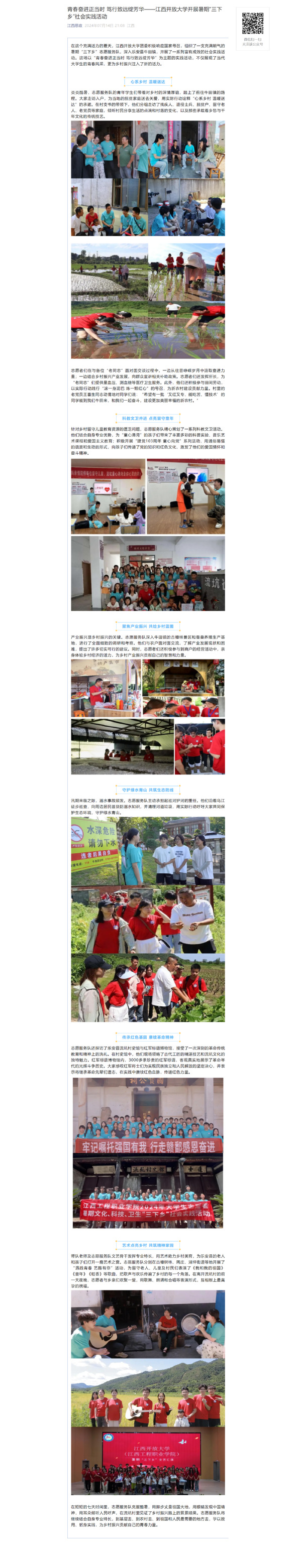 在这个充满活力的夏天,买球的app排行榜前十名推荐团委积极响应国家号召,组织了一支充满朝气的暑期“三下乡”志愿服务队,深入乐安县牛田镇,开展了一系列富有成效的社会实践活动。这场以“青春奋进正当时 笃行致远绽芳华”为主题的实践活动,不仅展现了当代大学生的青春风采,更为乡村振兴注入了新的活力。