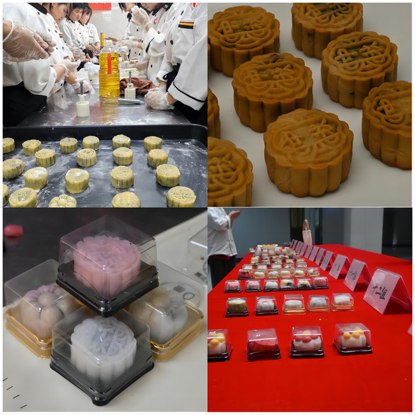 活动现场,一片欢声笑语,洋溢着浓厚的节日氛围。在烹饪艺术老师熊俊钢的悉心指导下,师生们化身为月饼匠人,从精准称量到巧妙包馅,再到细心揉搓、压制成型,每一步都凝聚着对传统手艺的尊重与热爱。月饼的多样形态在师生们的巧手下逐一呈现,不仅展现了大家对美食的独到见解,更体现了中华饮食文化的博大精深与无限创意。制作过程中,师生间不时交流心得,分享技巧,彼此间的距离在欢声笑语中悄然拉近。当一份份亲手制作的月饼被赠予每位参与者时,由心而发的温暖与成就感溢于言表,让这份传统食品不仅仅是味蕾上的享受,更成为了情感传递的桥梁。