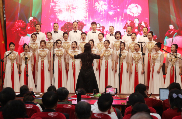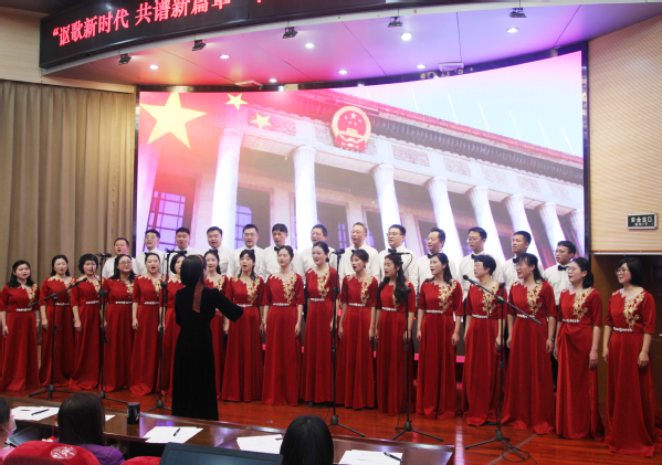 凯歌高奏辞旧岁,豪情满怀迎新年1231日下午,东湖校区学术报告厅喜气洋洋、热闹非凡,在全校师生的共同期待下,讴歌新时代 共谱新篇章教职工“迎新年”合唱活动圆满举行。在家校领导和来自全校各部门、各学院的300多名师生代表欢聚一堂,共贺新年。