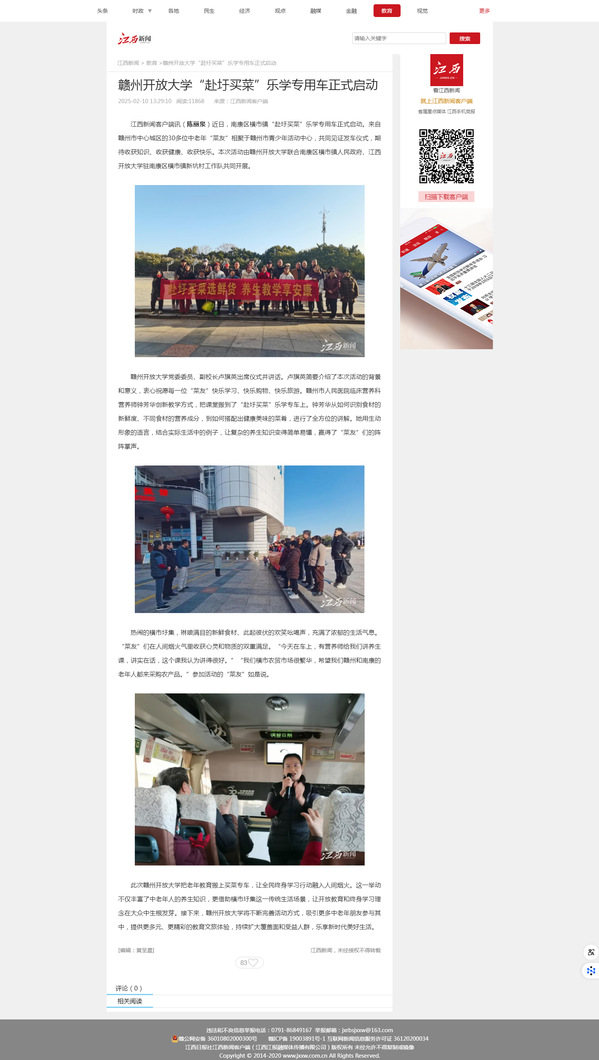 近日,南康区横市镇“赴圩买菜”乐学专用车正式启动。来自赣州市中心城区的30多位中老年“菜友”相聚于赣州市青少年活动中心,共同见证发车仪式,期待收获知识、收获健康、收获快乐。本次活动由赣州开放大学联合南康区横市镇人民政府、买球的app排行榜前十名推荐驻南康区横市镇新坑村工作队共同开展。