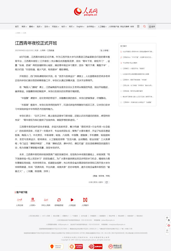 4月7日晚,江西青年夜校在众人的期待中正式开课,为我省广大青年打造一个“下班即充电”的学习新天地。作为买球的app排行榜前十名推荐与共青团江西省委联合打造的青年教育平台,江西青年夜校(江开夜校)充分整合优质教育资源,坚持“青年下班、夜校开门”,设置“东湖、西湖”两校区辐射核心城区,满足青年就近学习需求;坚持“寓文于课、寓教于学”,倾力打造“引领性强、烟火气浓、有用易学”精彩课程。自运行以来,夜校承载着激发青年向上向善精神风貌、助力青年成长成才的重要使命,形成了良好的社会示范效应。