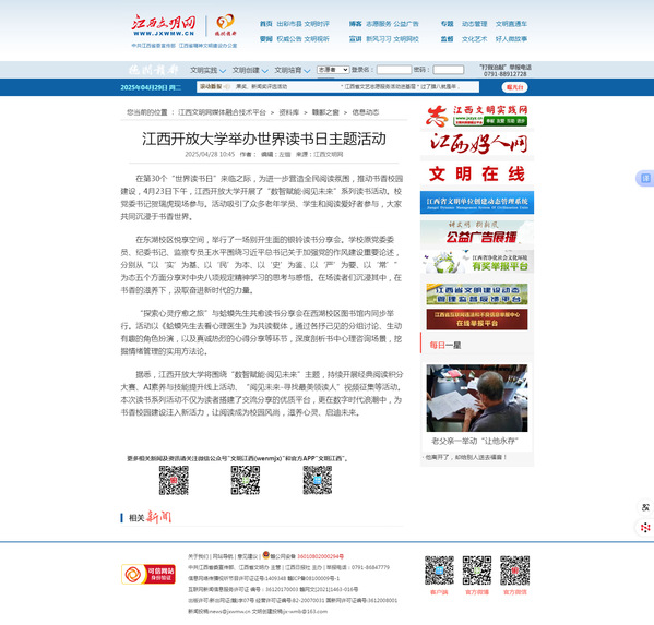 在第30个“世界读书日”来临之际,为进一步营造全民阅读氛围,推动书香校园建设,4月23日下午,买球的app排行榜前十名推荐开展了“数智赋能·阅见未来”系列读书活动。校党委书记贺瑞虎现场参与。活动吸引了众多老年学员、学生和阅读爱好者参与,大家共同沉浸于书香世界。