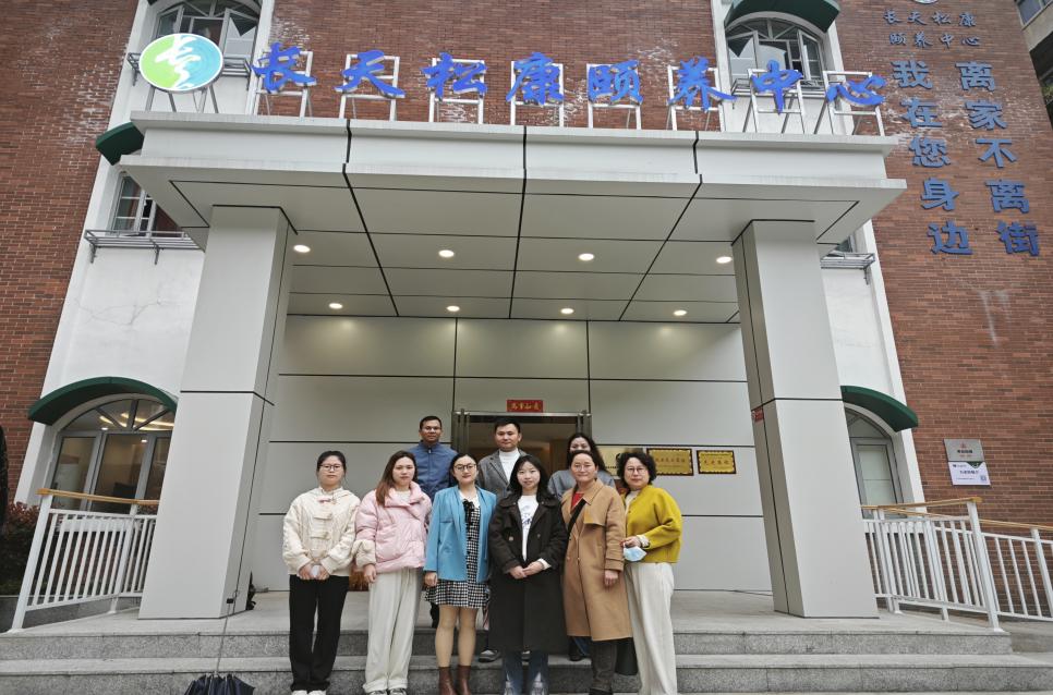 教师们首先来到位于罗家塘的江西长天松康颐养中心,该中心由南昌市西湖区妇女儿童中心引进,江西省长天松康健康养老产业发展有限公司运营,是国企江西长天集团响应国家健康中国战略,构建居家社区机构相协调、医养康养相结合的养老服务体系的重要探索。经过与运营部门徐经理沟通,考虑到旅游系健康管理专业学生的实际情况,松康颐养中心可提供颐养中心健康管理师和居家点养老规划师岗位6人。此外,还可以根据学生意愿与职业规划,提供养老护理与保健相关操作岗位进行专业实践。