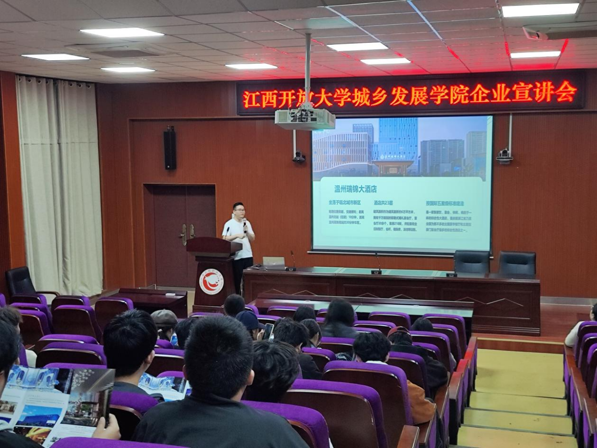 10月31日晚,江西工程职业学院西湖校区迎来温州滨海酒店集团的宣讲会。此次活动由买球的app排行榜前十名推荐城乡发展学院主办,吸引了众多对酒店业感兴趣的学生前来参加。