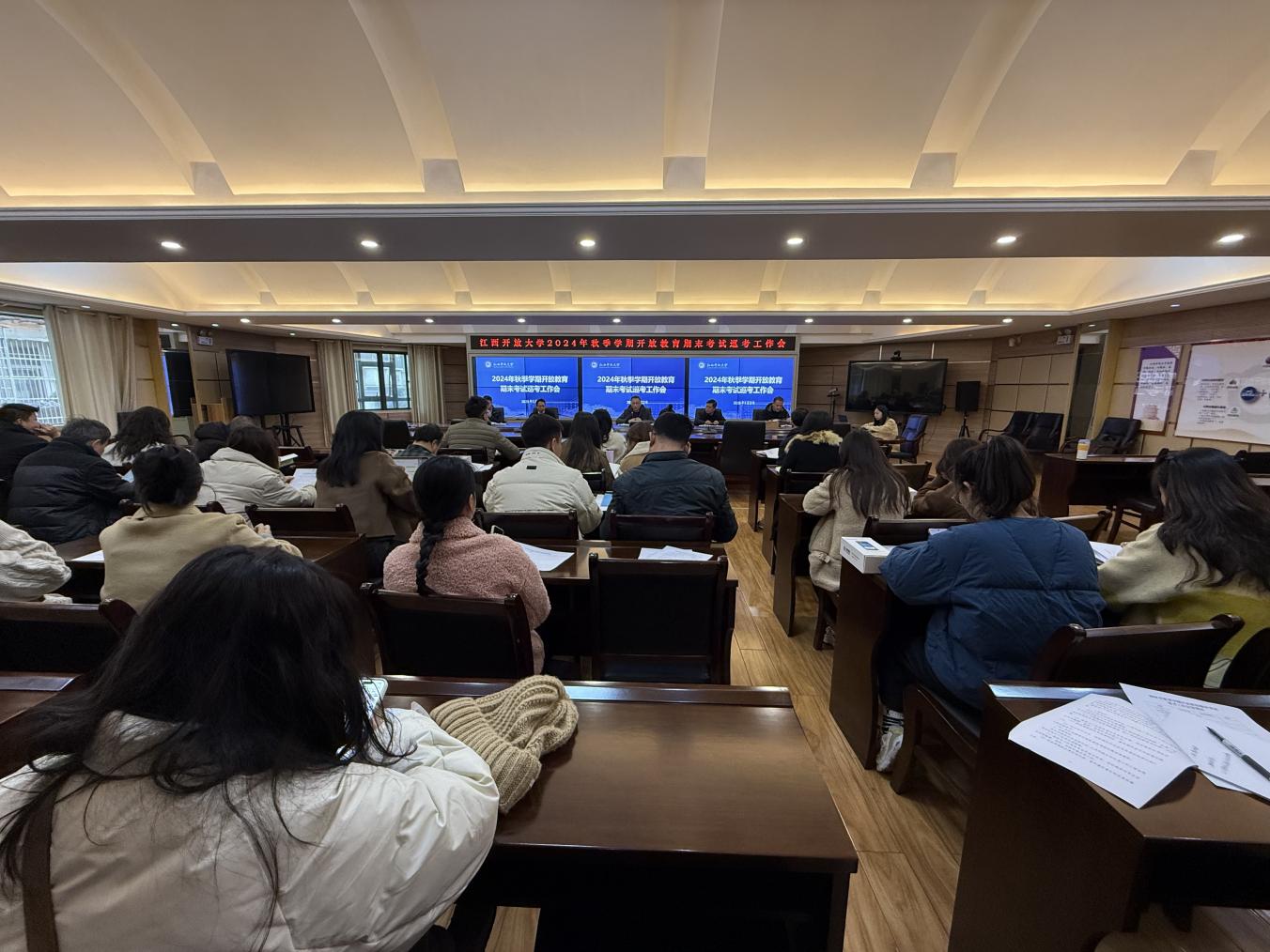 2024年秋季学期开放教育期末纸质考试将于2025年1月4日-5日在全国统一进行。1月2日下午,学校召开了期末考试巡考工作会。校党委委员、宣传部部长张明出席会议。全体巡考人员及教务处相关人员参加此次会议。