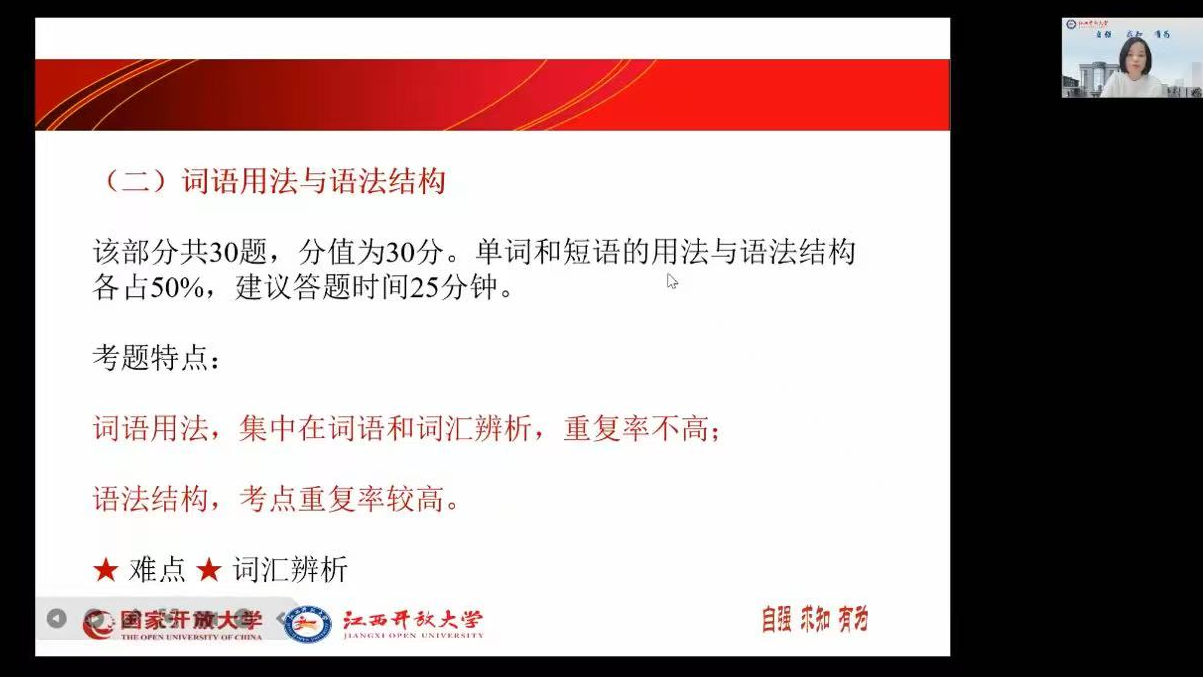 为提升学生国家开放大学学位英语考试应试水平,帮助学生掌握考试要点,熟悉题型结构,提高学位授予率,学校于2025年4月11日晚举办学位英语考试考前专题培训,全省系统近百名学生参加此次专题培训。