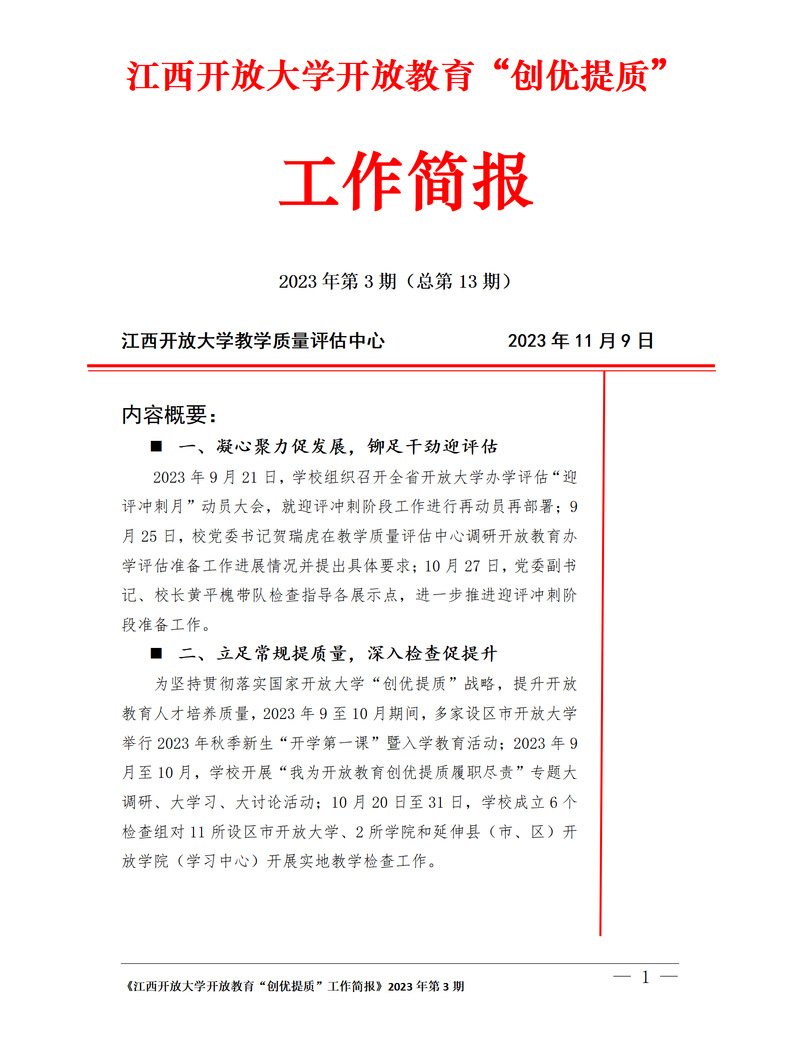 买球的app排行榜前十名推荐开放教育“创优提质”工作简报2023年第3期(总第13期)