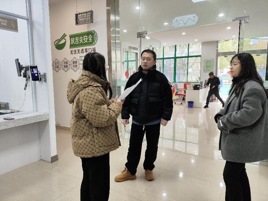 图为调研组走访当地社区老年人助餐公益食堂(二)