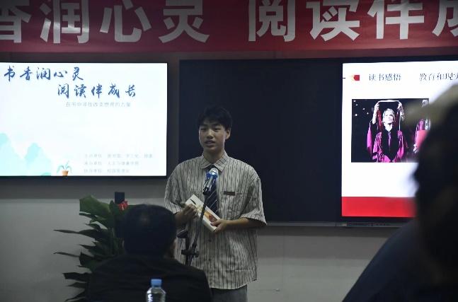 伴随着悦耳的音乐与精美的PPT呈现,六位分享同学依次上台带领我们走入五彩缤纷的书中世界。来自22商英的袁雪芳同学为我们带来的书籍是路遥先生的《平凡的世界》。“1975年二三月间,一个平平常常的日子,细蒙蒙的雨丝夹着一星半点的雪花,正纷纷淋淋地向大地飘洒着……”,随着袁雪芳同学的娓娓道来,我们逐渐走入了那个平凡又不平凡的世界,孙家两代人艰难困苦的生活图景在我们眼前徐徐展开,而背后那“生于平凡,却不止于平凡”的奋斗精神更是让我们这些正值奋斗年华的大学生备受鼓舞。