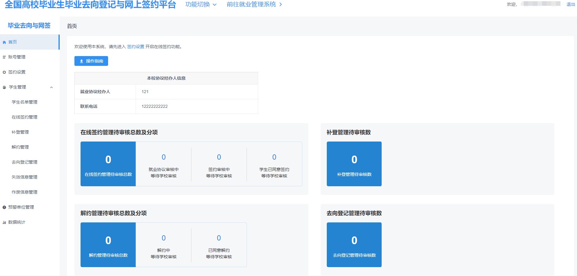 1、在线签约管理:该模块负责就业协议书审核和签约审核,毕业生审核就业协议书审核通过后,毕业生进行线下签约回传就业协议书,院系审核通过后,该学生签约完成,如审核不通过,毕业生需重新申请并回传。