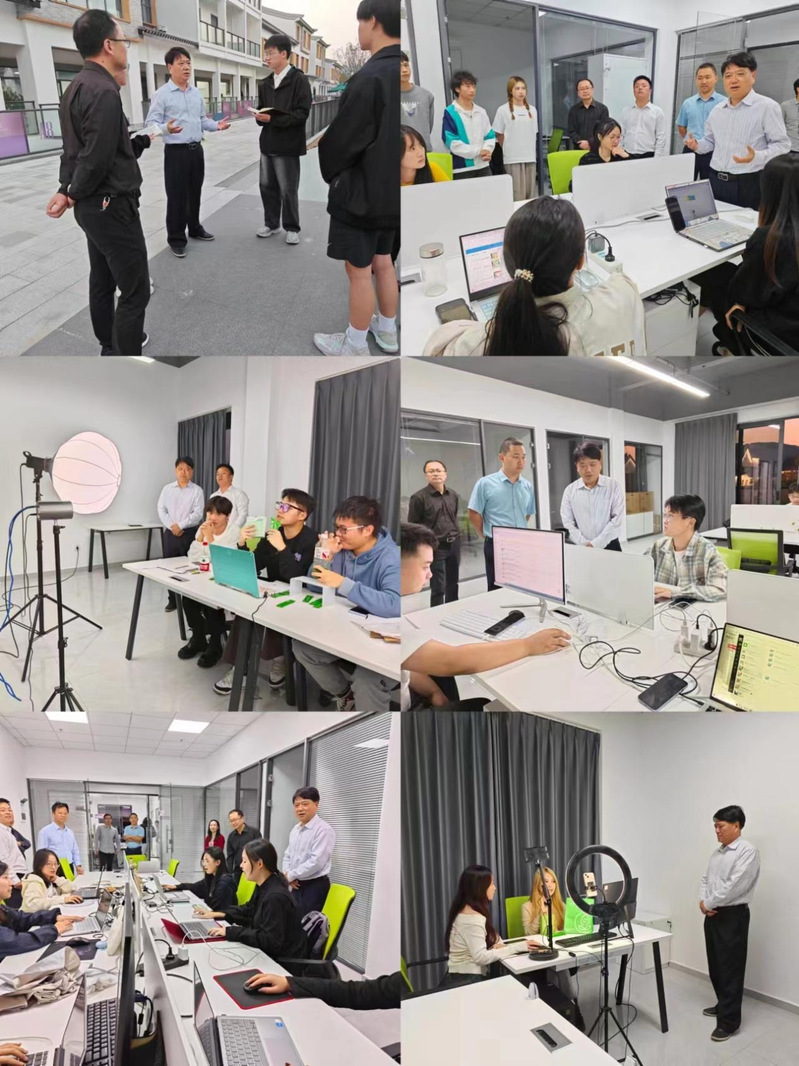 亲临现场,深入了解专业教学与实践教学融合效果。贺瑞虎一行来到江西淘鑫电子商务有限公司、好时节文化科技(湖州)有限公司安吉实训基地的实践教学教室、实践项目运营现场、专业教学课堂,与师生亲切交流,询问学生的学习情况,深入了解学生实践学习后的进步表现,对学生所取得的成绩由衷感到欣慰和开心,鼓励大家要继续努力,为未来就业创业做好准备,切实提升自身的竞争力。