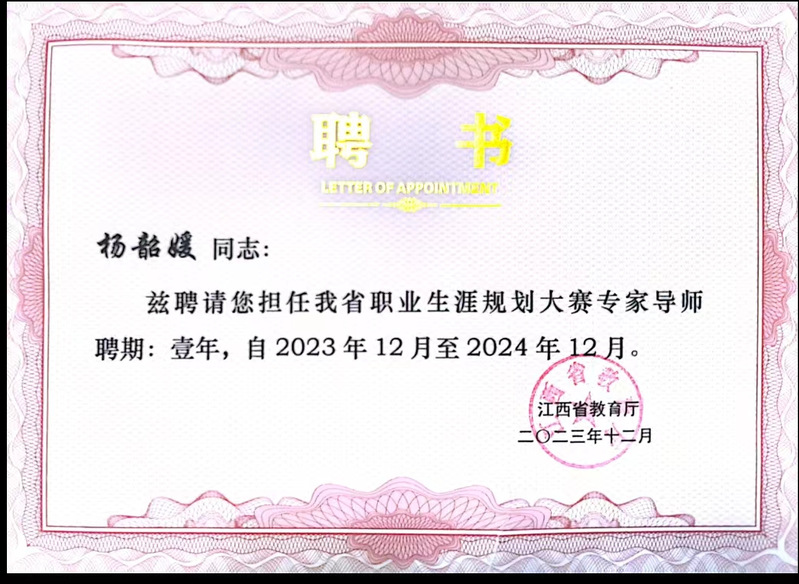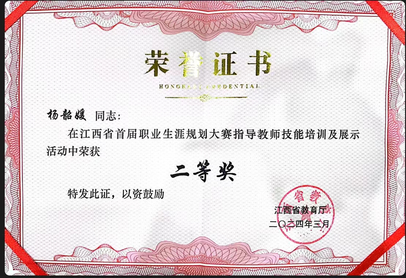 在第三届江西省“互联网+”大学生创新创业大赛暨首届职业生涯规划大赛指导教师技能培训及展示活动中,数字经济学院教师杨韶媛经过技能培训考核,初赛、复赛等环节,在全省本(专)科高校推荐选送的160余位参赛教师中获得二等奖,并受聘担任江西省职业生涯规划大赛专家导师。