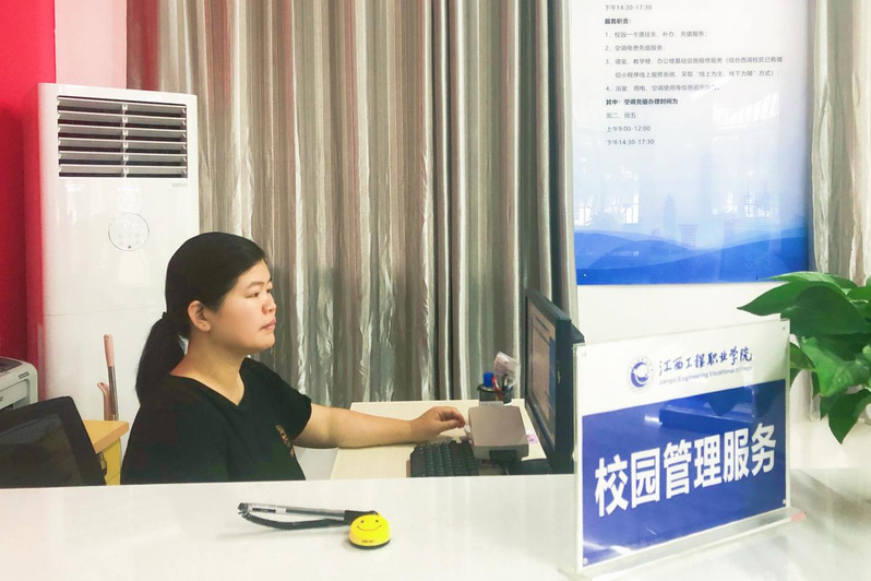 在西湖校区师生“一站式”综合服务中心,校园管理处服务窗口的陈晓惠同志同样工作时间最长,工作任务繁重,自进驻中心以来,兢兢业业,耐心解答学生急难愁盼的问题。面对学生急需解决的问题,往往顾不上休息,比如平日为学生进行生活用电及空调用电等充值业务,学生办理业务时往往因为没有电表数据需要往返寝室刷电表后才能办理充值,想着天气炎热,再晚也会回到窗口等待其刷完卡再进行充值,用心用情做好本职工作,尽心尽力为学生服务!