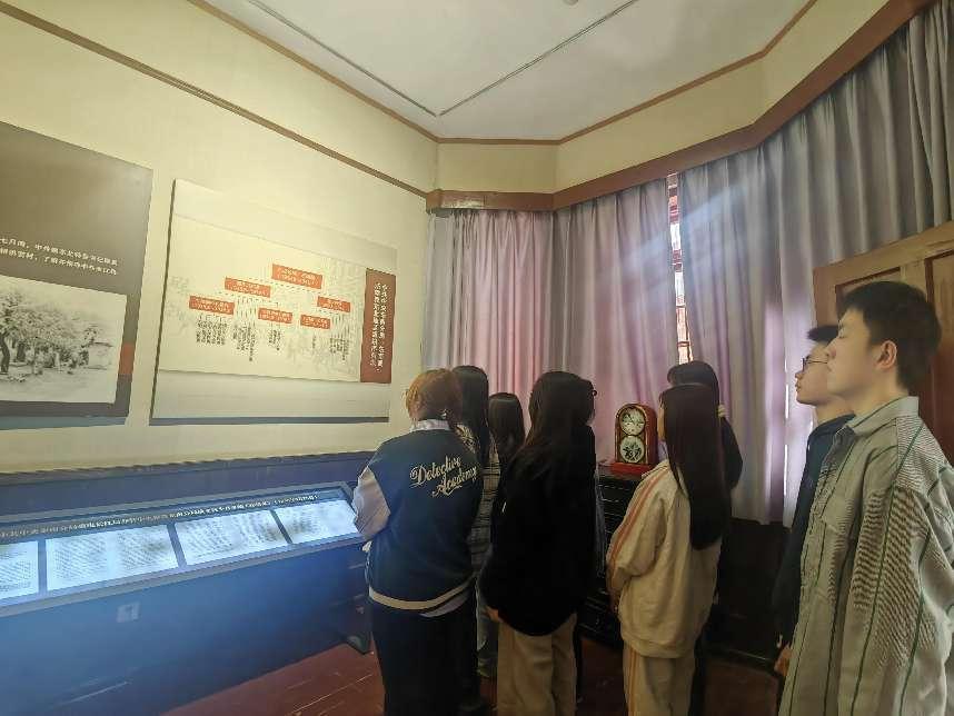 这张斑驳的木桌,正是东南分局同志们在敌后坚持斗争的见证……在旧址陈列馆,讲解员指着展柜中的历史文物,为生们讲述1937年项英、陈毅等老一辈革命家在此领导东南八省游击战争的峥嵘岁月。大家认真观看泛黄的《新华日报》,触摸复刻的革命文件,在场景复原的会议室驻足沉思,仿佛听见了当年战略决策时的铿锵话语。