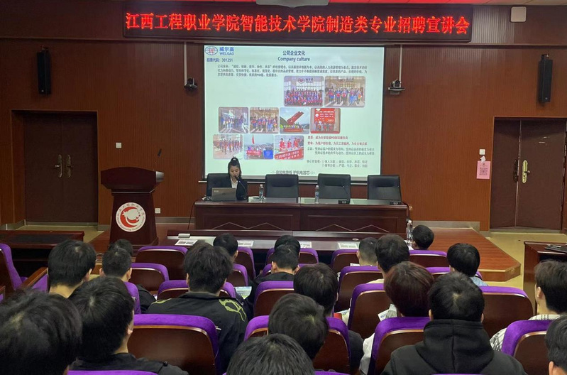 为落实“稳就业”“保就业”决策部署,扎实推进我院2024届毕业生就业工作,11月8日下午,智能技术学院特邀中山市博新科技有限公司、江西隆莱生物制药有限公司、江西威尔高电子股份有限公司三家企业进校园举办招聘宣讲会。参加招聘宣讲会的毕业班学生共计120余人,学院党委副书记、纪委书记汪一心主持宣讲会。