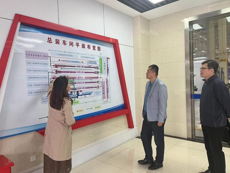 张世麒一行首先参观了江铃控股有限公司的总装车间和新能源汽车展厅,详细了解汽车冲压、焊装、涂装、总装、检测和营销等方面的业务流程与作业内容。