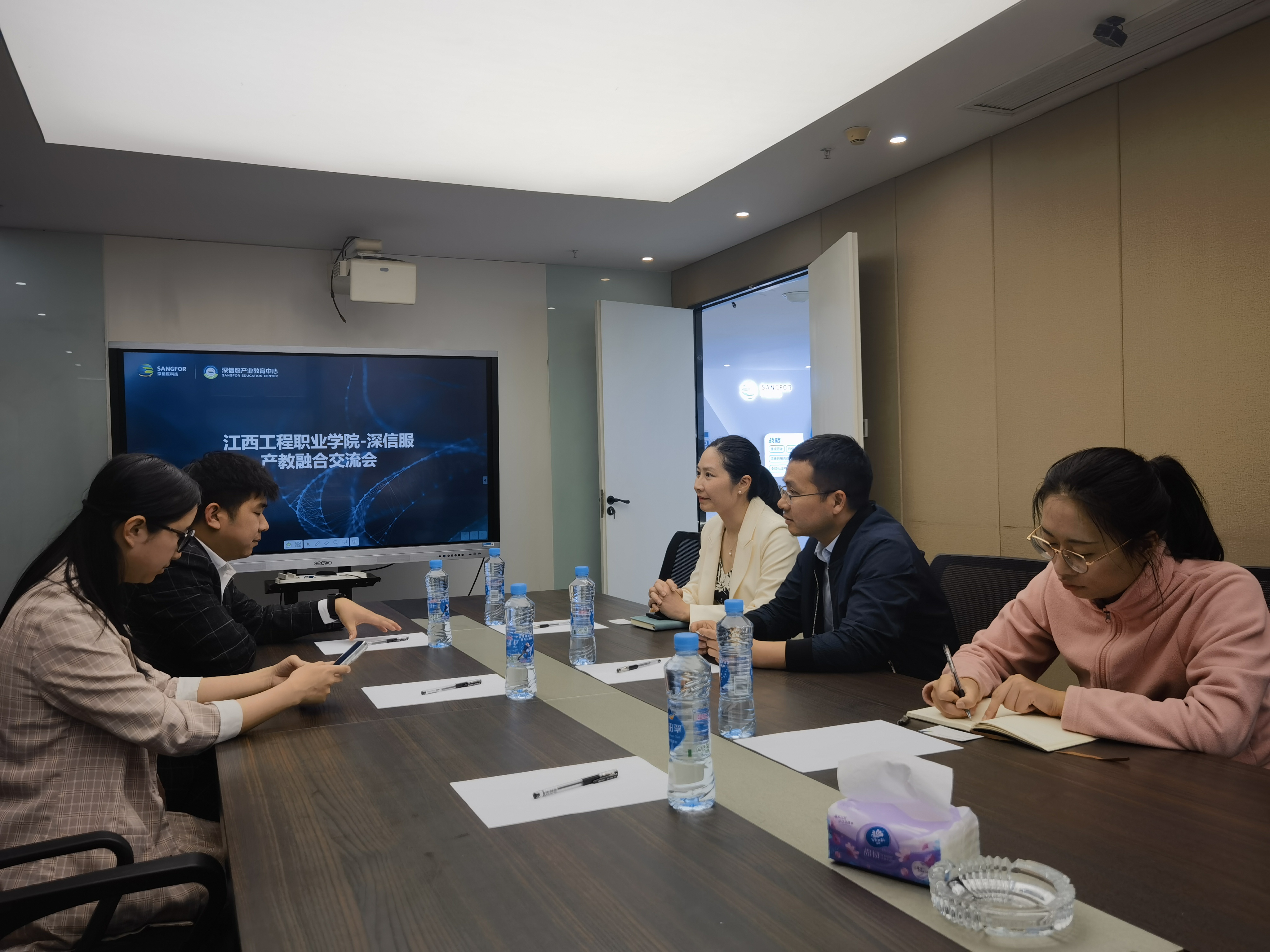 智能技术学院一行人实地走访参观了深信服科技股份有限公司、南昌宇尘清元科技有限公司、江西立北软件技术有限公司。通过座谈交流,院长程海水详细了解了企业的发展历程、公司业务情况,并仔细询问了企业的用人需求,深入了解企业对学院人才培养、学科建设发展的意见建议,期待双方今后在产教融合、实习实训、就业创业等方面开展更加广泛、更深层次的合作。院企双方均表示要不断加强合作交流、推动产教融合,实现校企互惠共赢、共同发展。